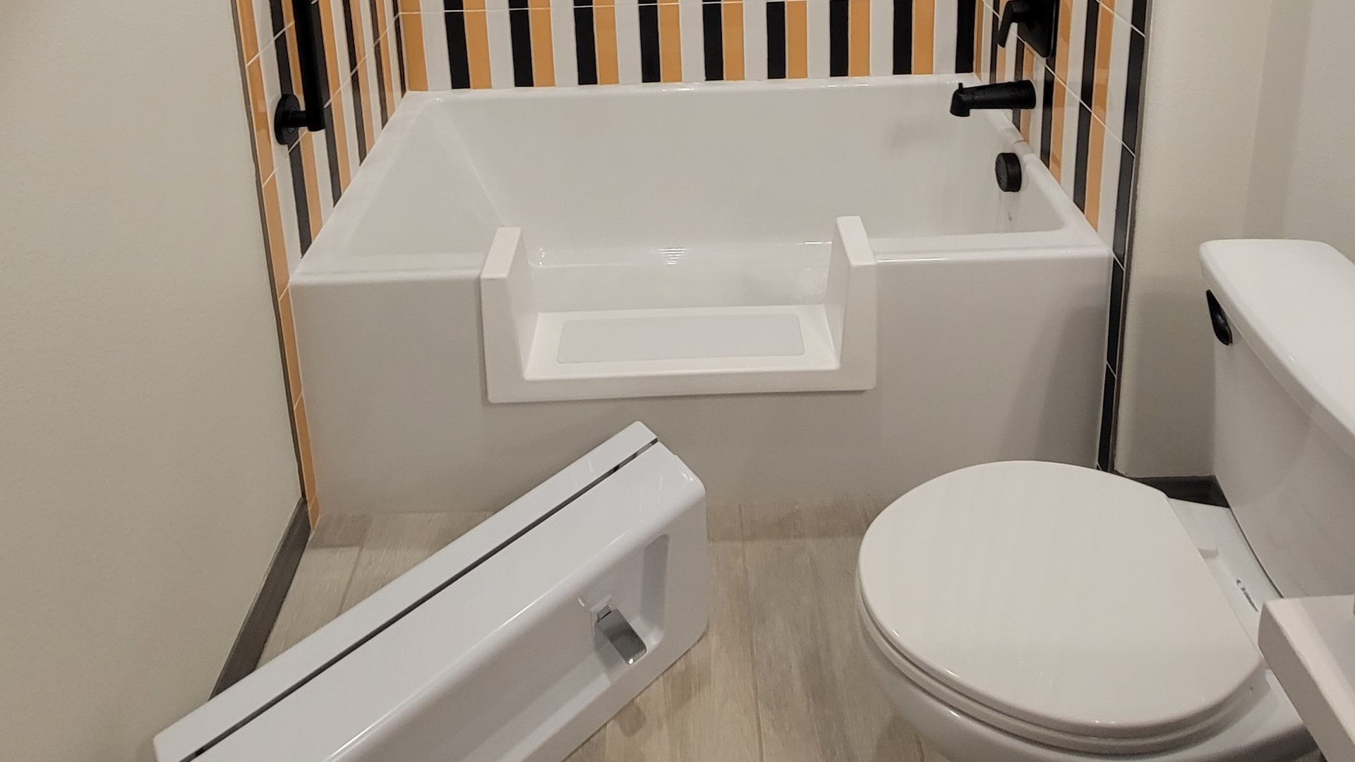 Grab bars and shower chairs can easily be added at the time the step-thru insert is installed. A grab bar in the appropriate location will allow for more stability when accessing the tub. Shower chairs are a great solution when someone isn’t quite steady enough on their feet to stand for the duration of a shower.