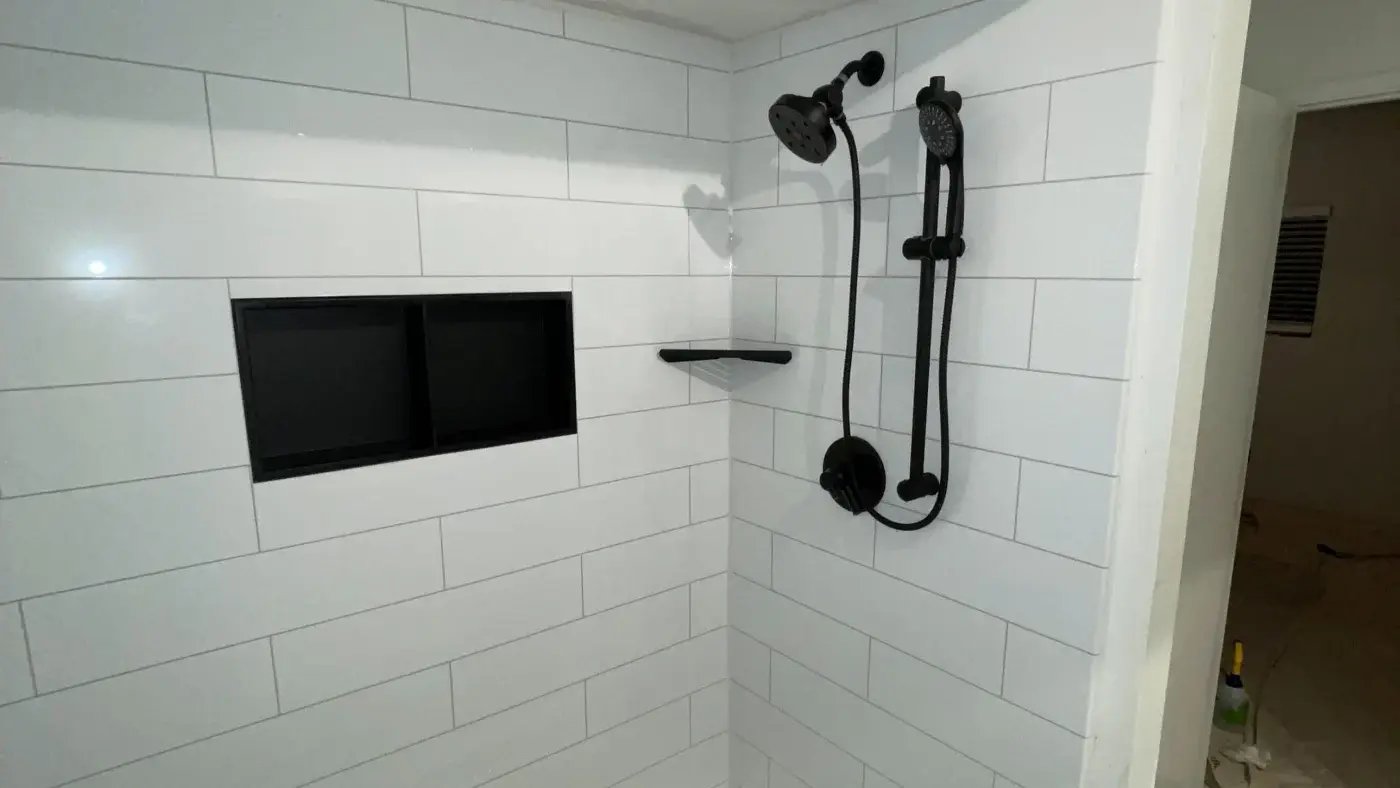 Built-in shelving can make a massive difference. A built-in shelf can be the perfect spot to store all of your shower products or add a touch of elegance by including a new design or a pop of color. Homeowners can get creative with this feature and design shelving that comes in various sizes and designs.