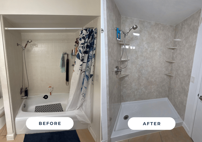 This isn’t to say there aren’t exceptions. Because bathrooms vary, there are cases where wall changes are worth discussing. Is the shower unsafe, completely unusable, or built in a very enclosed way? Definitely discuss that with a professional.