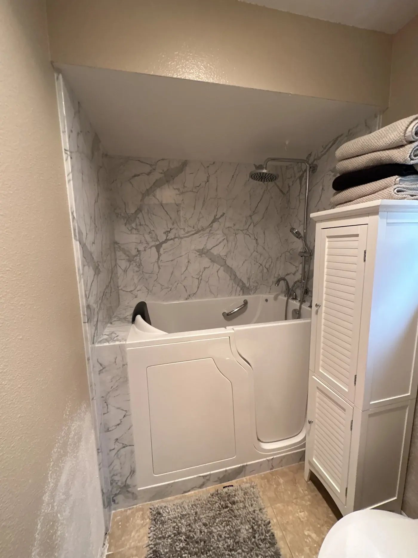 As we do with ALL wet-area bathroom remodels, we personalized Shirley’s new walk-in tub. And, while this is a giveaway, we went all out for Shirley and invested fully into the walk-in tub project.