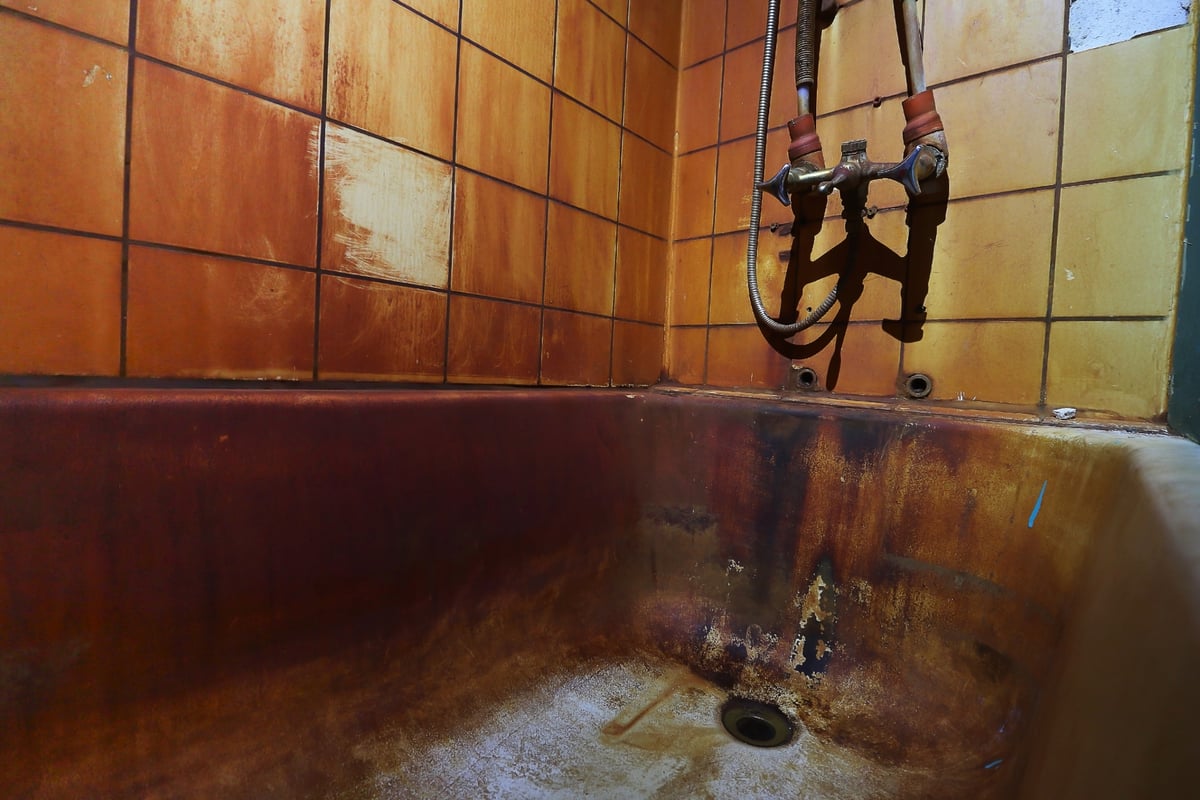 The tub and shower area combines multiple hazards, especially during daily use.